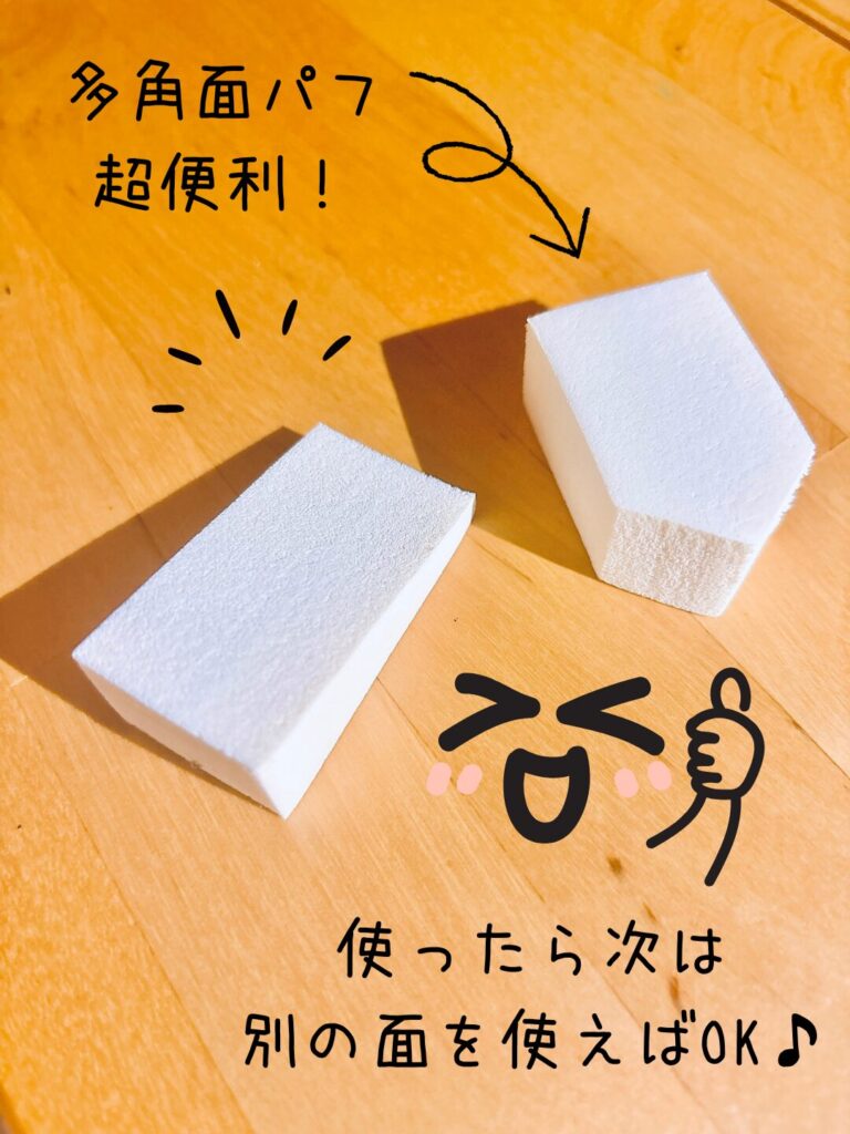 私はもちろん、①の使い捨て多角面パフをなるべく多く長く使いたおす、です。